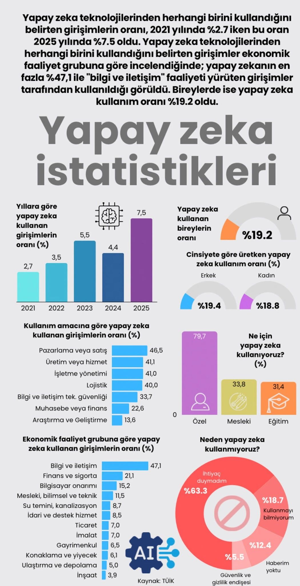 TÜİK verilerine göre, Türkiye’deki işletmelerin yapay zeka kullanımı son 4 yılda neredeyse 3 kat arttı!
